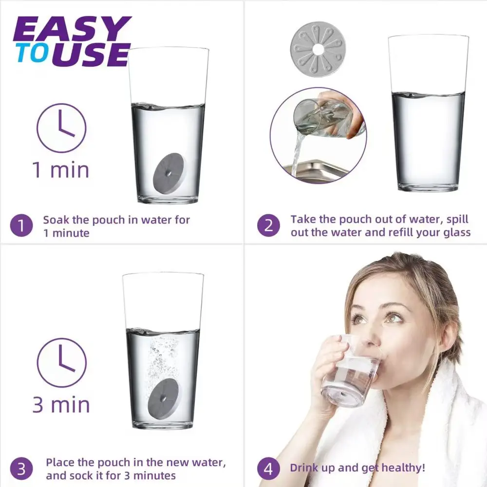 This 2-piece hydrogen water tablet set quickly transforms ordinary water into alkaline, oxygen-rich water. Ideal for portable use, each tablet comes sealed in an aluminum foil bag for freshness. Use it with your favorite cup or bottle to enjoy the benefits of hydrogen water anytime, anywhere.