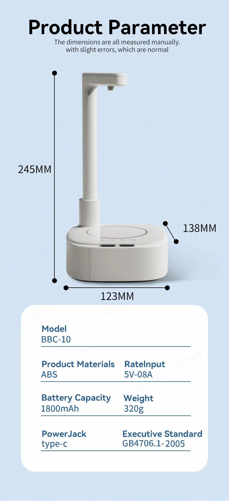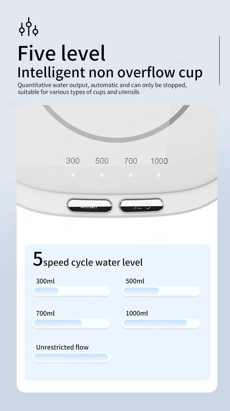 This Xiaomi Youpin water dispenser is a smart, rechargeable desktop pump with 5 adjustable water output levels. Designed for ease and efficiency, it supports automatic shut-off, unlimited flow mode, and fast bottle dispensing. Perfect for homes and offices, it delivers hot, warm, or icy water with just a touch.
